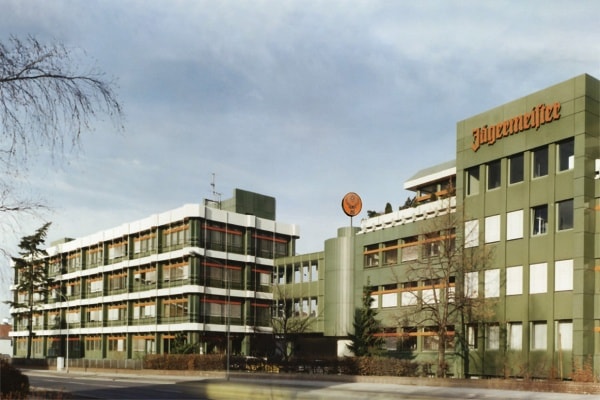 As the successful company grows, it moves from the former Jägermeister headquarters to a new building on Hermann-Korb-Straße.
